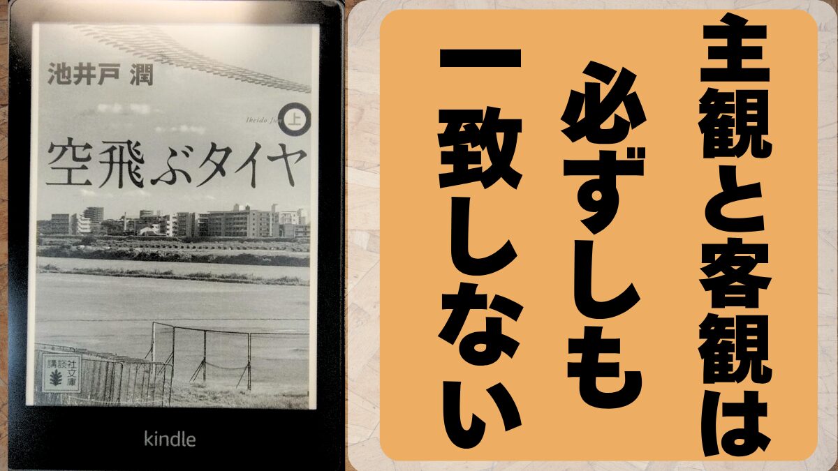 「主観と客観。その二つは必ずしも一致しない。今の沢田がそうであるように。商品開発部への異動という客観的成功に隠された、やりたい仕事ができないという主観的不満。客観的には満足できても、主観的には物足りない。主観と客観が両立したとき、夢は実現する。あるいは、夢が実現したとき、主観と客観は両立している。そういうものではないだろうか。」 空飛ぶタイヤ(下) (講談社文庫) (pp.205-206).